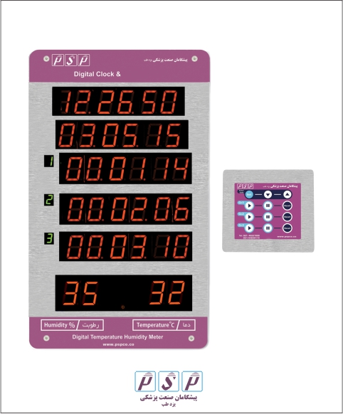ساعت اتاق عمل با دماسنج و رطوبت سنج به منظور مشخص شدن مدت زمان عمل و همچنین دما و رطوبت فضای اتاق عمل مورد استفاده قرار می گیرد.